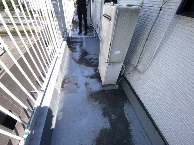 また木造住宅のベランダはFRP防水が多く硬いので窓サッシの端とかの末端が浮いて剥がれ
