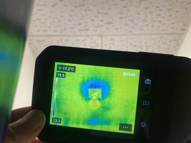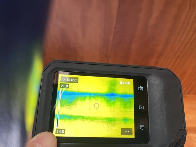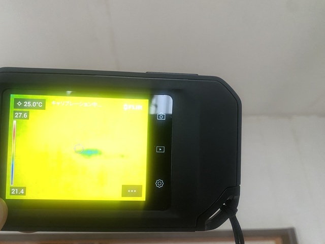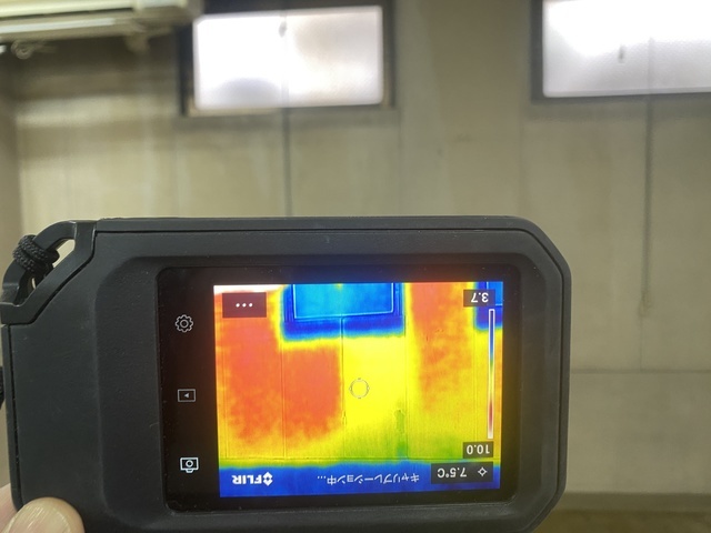 ただ赤外線で見ると、パイプの横の温度が低く青くなっています。