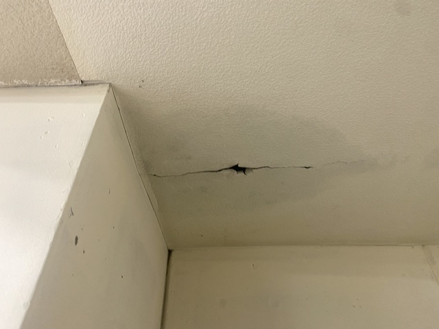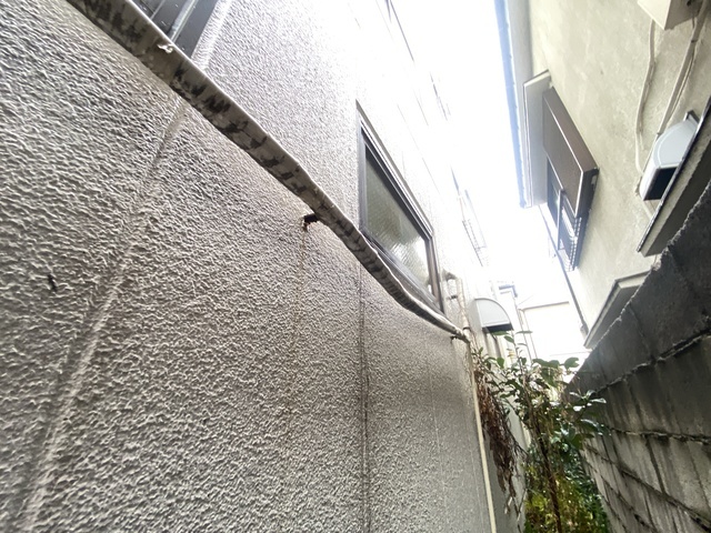 古い建物で、仕上げの下に防水をしてあるので、もう防水が効いていなくて、表面の状態も良くないので雨漏りしています。