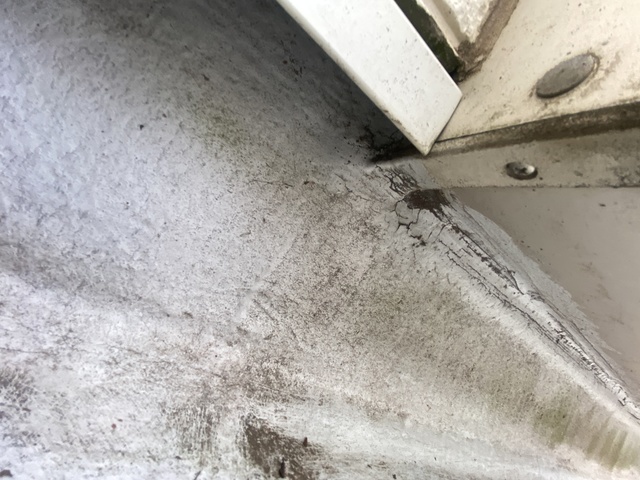 見た目はシーリングが劣化している程度ですが足で踏むと、下地が腐っていてかなりぶかぶかします。