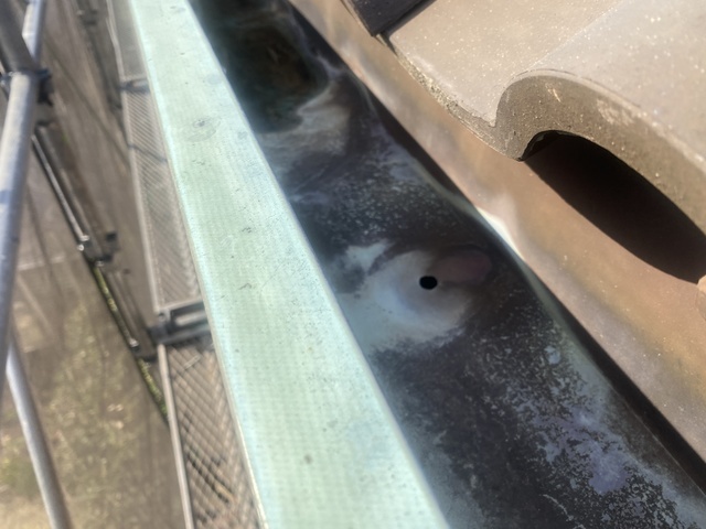 雨漏りしたということで屋根の確認をしたら、屋根材に錆があり、穴が開いていました。