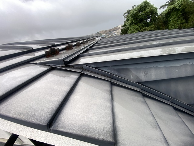 最低でも、棟と棟の間の屋根材を変えないと雨漏りは治りません。