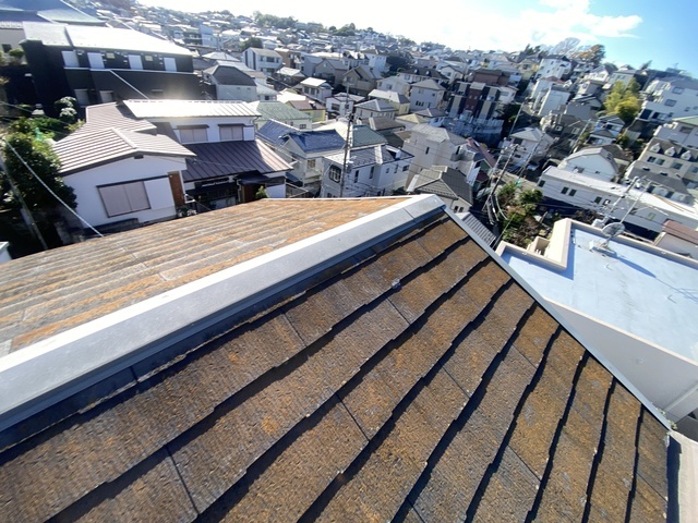 スレート屋根は重なって貼ってあるので、棟から離れているほど剥がす面積が大きくなります。