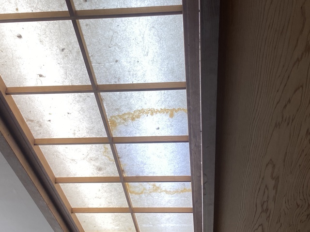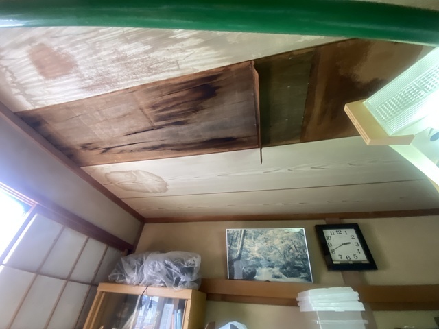 屋根面から雨漏りしているのがわかります。コロニアル屋根です。