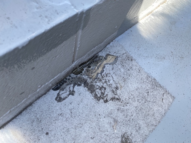 シート防水で、雨漏りの水切りの金属との境をシーリングしており、そこが劣化して
