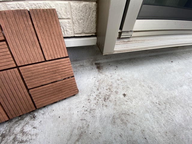 ベランダとサッシの接合面から雨漏りしているのがわかります。