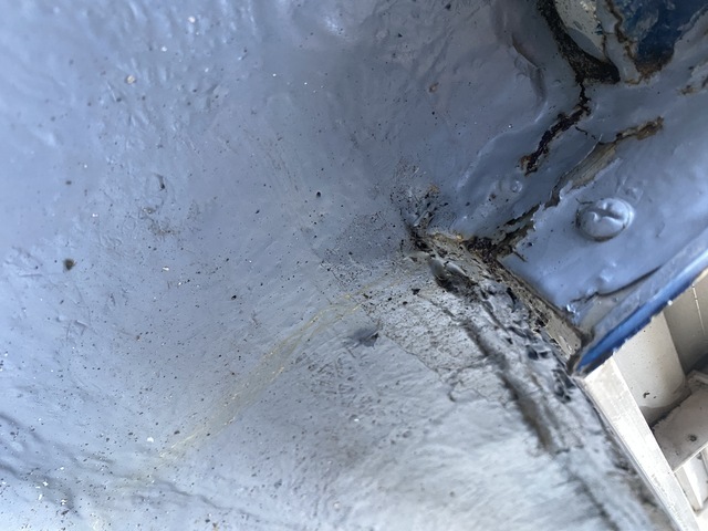 右写真の部分から雨漏りしているのがわかります。FRP防水です。
