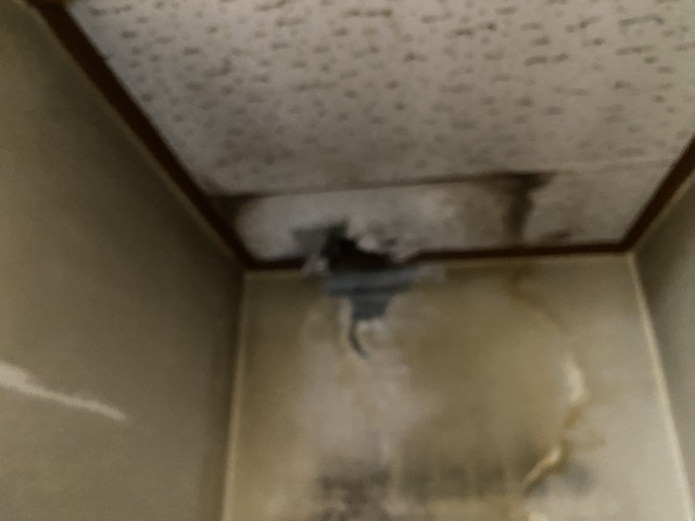 屋根面から雨漏りしているのがわかります。コロニアル屋根です。