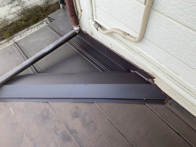 屋根材が勾配に向いてないところに、屋根の段差の部分があり